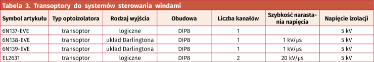 Listę transoptorów odpowiednich do opisywanych rodzajów aplikacji można znaleźć w tabeli 3.