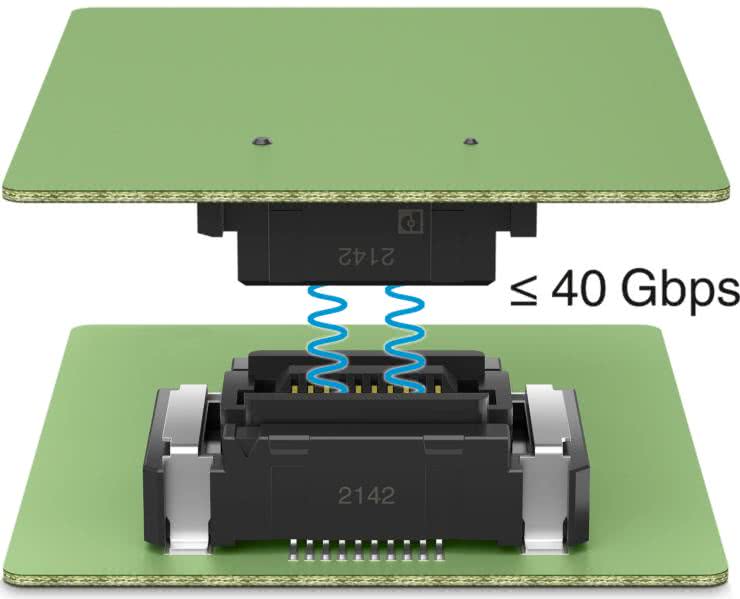 Szczególnie imponujące właściwości transmisji danych złącza pływającego serii FS 0,635 są unikalne na rynku. Pływający styk został zoptymalizowany do tego celu, dzięki czemu osiąga wyjątkową przepustowość na poziomie 40 Gbps, a to otwiera szeroki zakres nowych zastosowań złączy pływających (rysunek 4).