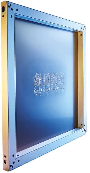 - Szablony na ramach aluminiowych z naciągiem siatkowym sprawdzają się w przypadku dużych i wielkich partii PCB, pozwalają bowiem na wykonanie nawet do 200 tysięcy cykli zadruku pasty przy zachowaniu powtarzalnych parametrów nanoszenia lutowia na pady. Ograniczeniem jest w tym przypadku grubość używanych ram aluminiowych (zwykle 38 mm), co wymaga znacznych powierzchni odstawczych.
