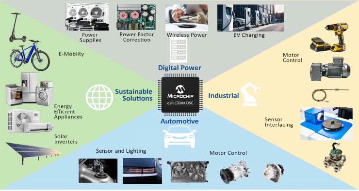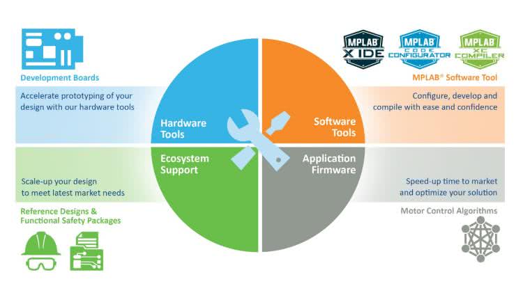 Microchip zapewnia również bezpłatne bloki urządzeń MPLAB do środowiska MATLAB Simulink, umożliwiając zoptymalizowane generowanie kodu na procesory dsPIC i inne mikrokontrolery Microchipa. Wciąż rozszerzane portfolio obejmuje gotowe do użycia projekty referencyjne, przeznaczone do sterowania silnikami w aplikacjach motoryzacyjnych, przemysłowych i konsumenckich.