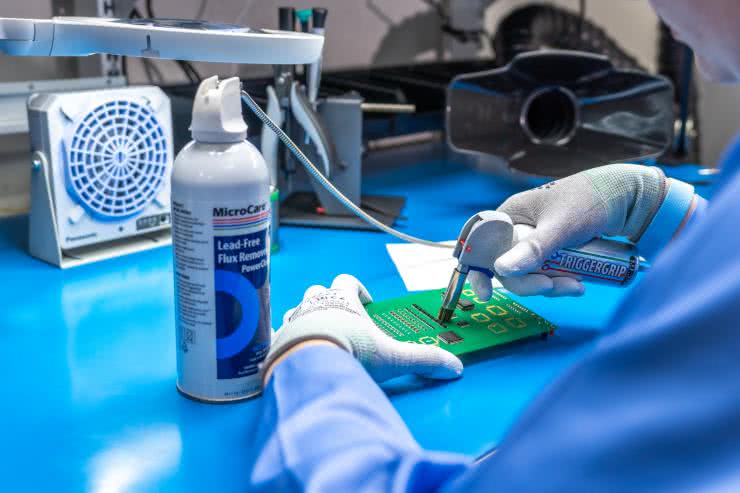 Rękawiczki antystatyczne okazują się niezbędne podczas pracy z wrażliwymi na wyładowania ESD elementami i płytkami PCBA. W ofercie RENEX dostępne są zarówno rękawiczki tkaninowe, jak i szczelne rękawiczki winylowe, także w wykonaniu antystatycznym – te ostatnie zapewniają dodatkową ochronę skóry przed chemikaliami (np. topnikami czy preparatami opartymi na IPA).