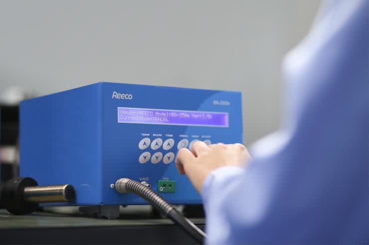 Prosta w obsłudze stacja hot air typu REECO RA-150 to popularny wybór wśród serwisantów, zwłaszcza z uwagi na szeroki wybór dysz, stabilny kontroler temperatury oparty na mikroprocesorze oraz dużą moc elementu grzejnego. Urządzenie jest wyposażone w unikalną funkcję chłodzenia elementu grzejnego po wyłączeniu zasilania.
