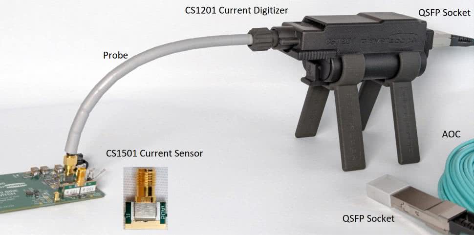 Przy użyciu zewnętrznych digitizerów CS1200 (napięciowy) oraz CS1201 (prądowy – fotografia 3) możliwe jest zwiększenie ratingu izolacji aż do 30 kV, przy zachowaniu 150-milimetrowego odstępu pomiędzy głowicą pomiarową, a badanym obwodem.