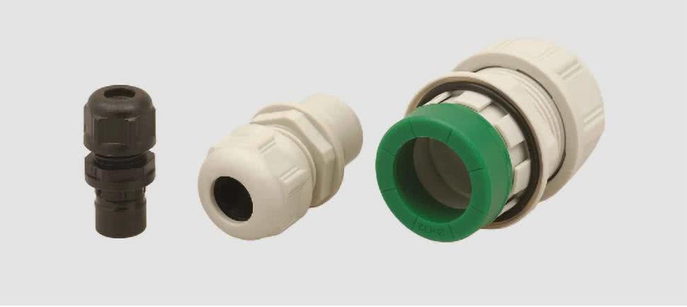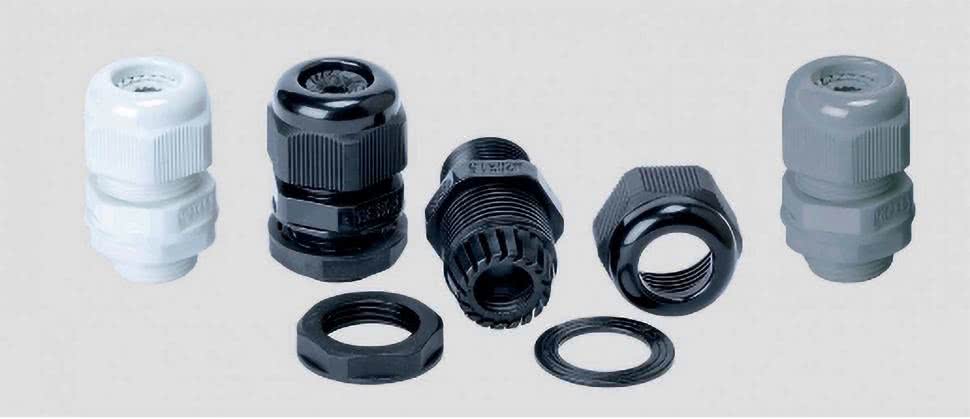 W typowych zastosowaniach maszynowych używane są często dławnice poliamidowe (fotografia 1). Klasa IP68 (10 bar) i IP69K zapewnia praktycznie najwyższy standard ochrony obudowy. W aplikacjach pracujących np. na zewnątrz budynków czy w niektórych halach przemysłowych bardzo istotny jest szeroki zakres temperatur pracy (w przypadku PA zwykle od –40°C do +100°C). Standardowo elementy te są wykonywane w kolorze czarnym, szarym lub niebieskim (wskazującym iskrobezpieczność zgodną z ATEX), ale istnieje możliwość uzgodnienia innego koloru. Ten typ dławika jest ponadto bezhalogenowy oraz spełnia wymagania dyrektywy RoHS.