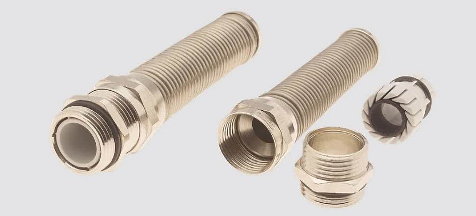 Dobrym przykładem dławików metalowych są elementy z serii HSK-MS-B (fotografia 6). Dławiki te są wykonane z mosiądzu i mają zintegrowaną odgiętkę w formie sprężyny ze stali nierdzewnej. Ich wytrzymałość mechaniczna jest znacznie wyższa niż w przypadku odpowiedników tworzywowych.