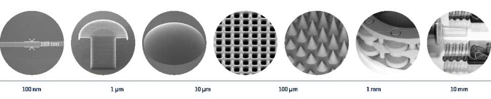 Skala wielkości elementów, które można wyprodukować za pomocą drukarki NanoOne, wynosi od poniżej 150 nanometrów do ponad 40 milimetrów. Cztery soczewki o różnej rozdzielczości zapewniają maksymalną elastyczność. Przepustowość ponad 450 milimetrów sześciennych na godzinę jest podstawą wysokiej wydajności. Precyzję procesu drukowania zapewnia nie tylko wysokiej jakości optyka laserowa, ale także precyzyjne wyrównanie podłoża. Jest ono zabezpieczone na ruchomym wsporniku.