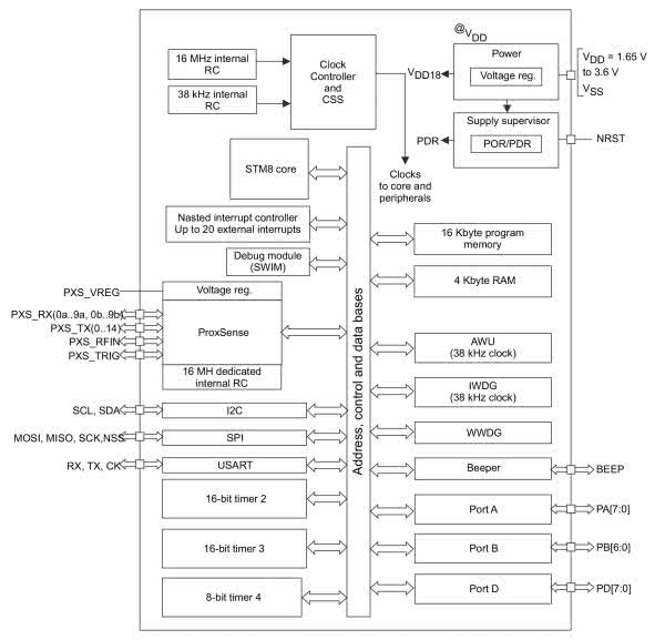 Są to 8-bitowe mikrokontrolery firmy STMicroelectronics, bazujące na rozwiązaniach znanych z produkowanej od wielu lat rodziny STM8. Wyróżniają się one na rynku wbudowanym interfejsem ProxSense, który umożliwia budowę zaawansowanych nastawników, przełączników i sensorów pojemnościowych o maksymalnej liczbie pól czujników wynoszącej 300. Interfejs ProxSense jest jednym z najdoskonalszych obecnie opracowań bazujących na sensorach pojemnościowych, przeznaczonym do wykrywania obecności i ruchu różnych obiektów w niewielkiej odległości od pola sensorów. Ma wbudowany zaawansowany system autokalibracji oraz kompensacji zmian środowiskowych, dzięki czemu jego niezawodność w realnych aplikacjach jest bardzo wysoka.