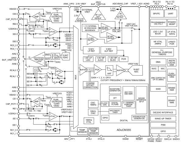 - mikrokontrolery ADuCM330WFS/331WFS (Cortex-M3), przeznaczone do systemów pomiarowych z czujnikami z wyjściami mostkowymi, przy czym zintegrowany przetwornik pomiarowy A/C ma rozdzielczość użytkową 20 bitów.