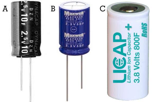 Najczęściej superkondensatory zamykane są w obudowach cylindrycznych z wyprowadzeniami w postaci drutu dla mniejszych pojemności (Samwha Green-CAP DS), SNAP-IN dla średnich prądów (Samwha Green-CAP DS) i terminali śrubowych, M6...M12 dla aplikacji wysokoprądowych (Nippon-Chemicon DXF, Samwha DP). Przykładowe kondensatory w obudowach cylindrycznych pokazano na fotografii 7.
