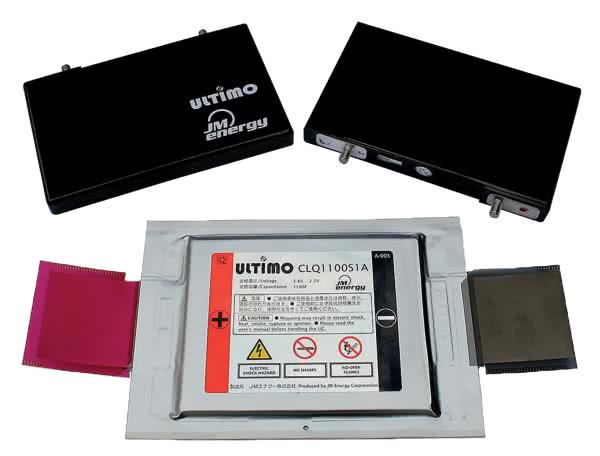 Ułatwieniem dla producentów baterii superkondensatorów o większych pojemnościach są kondensatory pryzmatyczne w wersji laminowanej lub w obudowie z tworzywa sztucznego. Przykładem kondensatora w obudowie laminowanej jest Ultimo LIC CLQ1100A1A, 1100 F/3,8 V, charakteryzujący się pracą w temperaturze -30...+70°C, rezystancją ESR ok. 1,2 mΩ, gęstości energii 10 Wh/kg, niskim spadkiem pojemności w szerokim zakresie temperatur (-20%, przy -20°C w odniesieniu do 25°C) i niewielkim samorozładowaniem poniżej 5% w ciągu 3 miesięcy w 25°C. Przykładowe kondensatory pryzmatyczne w wersji laminowanej i w obudowie pokazano na fotografii 12.
