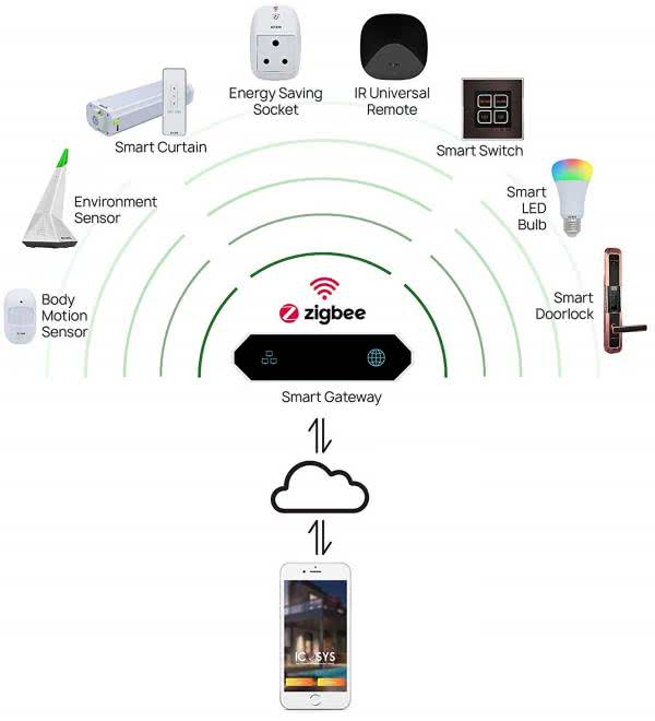 Aby umożliwić komunikację i interakcję pomiędzy różnymi urządzeniami zostają one połączone siecią. W zależności od standardu, połączenie może być bezprzewodowe (np. Bluetooth, WLAN/Wi-Fi, Z-Wave/ZigBee) lub kablowe (Ethernet, Powerline itp.). W kompleksowych systemach znajduje się centralna jednostka sterująca zwana Gateway, która umożliwia komfortowe zarządzanie całym systemem oraz nadzoruje komunikację połączonych ze sobą urządzeń. Zbiera i zapisuje dane z czujników, oraz rozsyła nastawy i zadania dla urządzeń końcowych. Gateway może być sterowany z dedykowanych paneli sterujących.