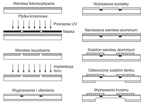Z technologią MEMS związane są ściśle techniki fotolitograficzne. Polegają one na odtwarzaniu na określonym podłożu, np. na strukturze półprzewodnikowej, wzoru umieszczonego na specjalnej masce. Proces przypomina trochę tradycyjną fotografię, w której obraz na odbitce powstaje w miejscach naświetlonych warstwy światłoczułej. Obszary nie wchodzące w skład obrazu są usuwane np. metodą wypłukiwania lub trawienia chemicznego (rysunek 1).