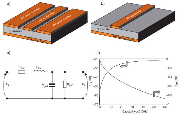 Podgrupa Bio-MEMS rozwija się bardzo dynamicznie i na pewno w najbliższym czasie możemy spodziewać się wielu spektakularnych osiągnięć w tej dziedzinie. Równie wyraźnie wyodrębniła się grupa podzespołów MEMS przeznaczonych dla urządzeń radiokomunikacyjnych, której nadano nazwę RF MEMS. Największe zainteresowanie tymi elementami wykazują producenci telefonów komórkowych, ale można je znaleźć również w innych urządzeniach komunikacji bezprzewodowej, w GPS-ach, radarach itp. Początki układów RF MEMS sięgają lat 90. XX wieku, a więc mniej więcej czasu, gdy do powszechnego użytku weszły już akcelerometry. Z technologią MEMS od dawna wiązano duże nadzieje m.in. w zakresie produkcji milimetrowych i mikrometrowych linii transmisyjnych, a więc tam, gdzie konieczne jest zachowanie ostrych wymogów odnośnie wymiarowania podzespołów. Prace badawcze potwierdziły przydatność tej technologii dla zastosowań radiowych i dział ten zaczął się bardzo szybko rozwijać. Implementacja linii mikropaskowych czy falowodów budowanych na bazie krzemu stała się na tyle opanowana, że można było rozpocząć produkcję takich elementów (rysunek 2). Oprócz zwartej budowy charakteryzują się one niską stratnością, co jest bardzo ważną cechą w zastosowaniach radiowych.
