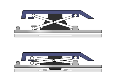 Rozwiązaniem pośrednim, pomiędzy klawiaturami membranowymi i silikonowymi, a mechanicznymi, które oferuje zauważalnie lepszą ergonomie pisania, są klawiatury wyposażone w przełączniki nożycowe. Przykład takiego elementu zaprezentowano na rysunku 6.
