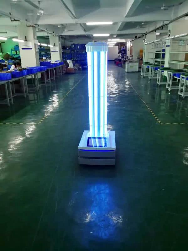 Zaprezentowane urządzenie jest pozycjonowane manualnie w pomieszczeniu, które ma być dezynfekowane. Następnie system należy podłączyć do zasilania i opuszcza się pomieszczenie. Robot wykrywa moment opuszczenia pomieszczenia przez ludzi i dopiero wtedy rozpoczyna działanie lampy UV-C. Źródłem promieniowania jest lampa rtęciowa. Robot ten posiada sensory, które wykrywają pojawienie się człowieka w polu działania systemu i powoduje natychmiastowe wyłączenie źródła UV-C. Istnieją roboty o wyższym poziomie autonomii, takie jak np. SIFROBOT-6.59 (fotografia 4). Jest to autonomiczny, zasilany bateryjnie robot, wyposażony w LIDAR, odometr i zestaw do nawigacji inercyjnej (akcelerometry oraz żyroskopy). Oprócz dezynfekcji powierzchni w pomieszczeniach zabija także mikroorganizmy znajdujące się w powietrzu – wyposażony jest w układ, który zasysa powietrze z pomieszczenia i przepuszcza je przez układ sterylizacyjny.