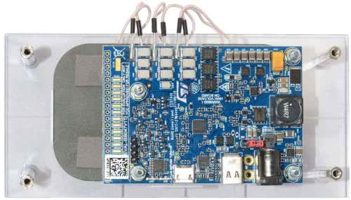 Najpopularniejszy standard ładowania bezprzewodowego Qi, wspierany jest przez wielu uznanych producentów, którzy oferują zarówno same układy scalone kontrolerów, jak i gotowe zestawy uruchomieniowe. Przykładem zestawu zgodnego z Qi WPC1.2.4 jest oferowany przez ST nadajnik STEVAL-ISB047V1, którego wygląd pokazuje fotografia 3.