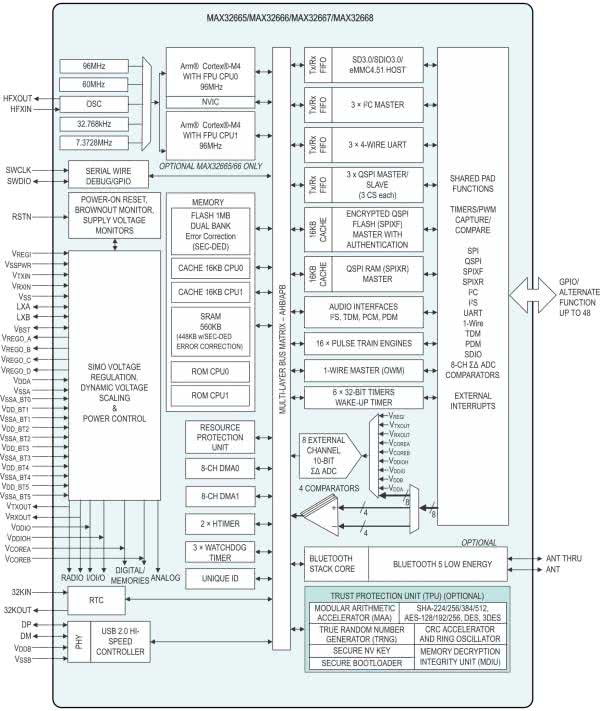 - Wydajność 1,25 DMIPS/MHz (Dhrystone 2.1), <72 μA/MHz (CoreMark);