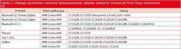 Przykładem są układy scalone rodziny SimpleLink CC13x2R/CC26x2R firmy Texas Instruments [4] oraz rodzina SmartBond DA1469x firmy Dialog [16].