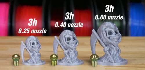Druk 3D w znacznym stopniu obniża koszty prototypów oraz pozwala na wykonanie jakichś skomplikowanych części. Drukarki FDM mają różne pola robocze od 220×220×200 mm do tak dużych jak 600×600×500 mm. Na fotografii 20 został pokazany przykład wydruku w technologii FDM. W tej technologii można zainstalować dyszę różnej wielkości, standardowo jest to 0,4 mm, lecz dostępne są również dysze 0,8 czy 0,1 mm. Na fotografii 21 zostały pokazane efekty drukowania trzema różnymi dyszami. Należy pamiętać, że drukowanie z użyciem coraz większej dyszy jest coraz mniej dokładne.