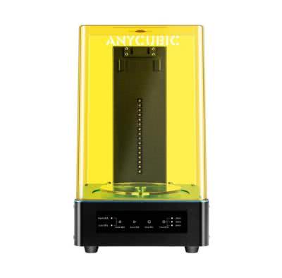 Istnieje kilka technologii wydruków 3D, przeznaczonych do różnych zastosowań. Popularną wśród majsterkowiczów jest SLA (Stereo Lithography). W tej technologii materiałem jest ciekła żywica, która zostaje utwardzana światłem lasera. Wydruki z żywicy nie są aż tak wytrzymałe jak wydruki w technologii FDM, ale są dokładniejsze. Technologię SLA wykorzystuje się głównie do wydruku detali, na przykład figurek (fotografia 26). Na fotografii 27 została pokazana drukarka 3D przeznaczona do wydruków w technologii SLA. Drukarka żywiczna musi stać w bardzo dobrze wentylowanym pomieszczeniu. Dodatkowo wydruk ma na sobie trochę „luźnej” żywicy. Wydruki żywiczne poddaje się myciu i utwardzaniu w przeznaczonych do tego urządzeniach (fotografia 28). Pozostałe technologie wydruków 3D to m.in.:
