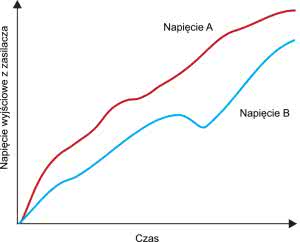 Tętnienie napięcia to mała, niepożądana zmiana napięcia wyjściowego stabilizatora, która występuje w wyniku przenoszenia energii podczas cykli włączania i wyłączania przetwornicy impulsowej z stabilizatora do obciążenia. Oznacza to, że na tętnienia napięcia ma wpływ nie tylko układ przetwornika, ale także sam zasilany system, w tym układ programowalny i jego komponenty zewnętrzne, które wprowadzają pasożytnicze pojemności i indukcyjności do linii zasilania.