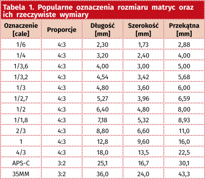Przeważnie im większa matryca przetwornika tym lepsza jakość obrazu, ponieważ pozwala na ulokowanie większej liczby pikseli lub o większej powierzchni aktywnej. Rozmiar przetwornika określa, także rodzaj obiektywu, który można zastosować. Możliwe jest użycie obiektywu takiego samego lub większego. W tabeli 1 zestawiono popularne oznaczenia rozmiaru z rzeczywistymi wymiarami matryc.