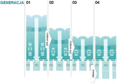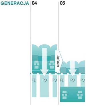 Nowy rodzaj matryc był intensywnie rozwijany i powstawały kolejne generacje, które różniły się przede wszystkim grubością warstwy półprzewodnikowej (rysunek 15).