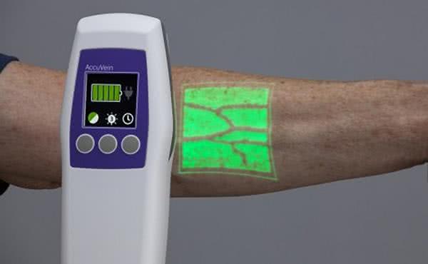 To samo zjawisko jest stosowane w połączeniu z miniaturowym projektorem laserowym, także w zdobywających coraz większą popularność skanerach (lokalizatorach) żył, stosowanych do poszukiwania najlepszego miejsca dla wykonania procedur medycznych wymagających nakłucia żył u pacjentów z tzw. trudną anatomią (fotografia 7).