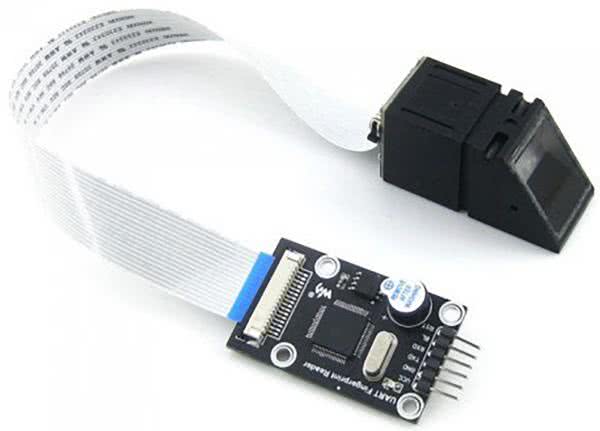 Czujniki optyczne – w swojej podstawowej wersji wykorzystują niewielką kamerę i oświetlacz, które są połączone za pomocą pryzmatu w jeden tor optyczny. Pozwalają na akwizycję obrazu całego wymaganego obszaru skóry palca za pomocą pojedynczego zdjęcia. Czujniki tego typu należą do najtańszych i są dostępne w postaci modułów, kompatybilnych z popularnymi platformami systemów wbudowanych (w tym Arduino czy Raspberry Pi). Wizualną cechę rozpoznawczą większości sensorów optycznych tego typu stanowi charakterystyczny, wydłużony kształt z pryzmatycznie pochyloną powierzchnią frontową (rysunek 7).