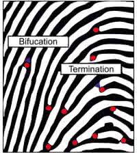 W przypadku odcisków palców najważniejszym zbiorem cech podlegających analizie porównawczej są pewne charakterystyczne kształty i zespoły linii papilarnych, które w nomenklaturze biometrycznej zyskały nawet swoje nazwy (rysunek 11):