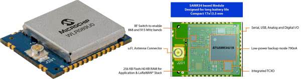 Jednak połączenia radiowe na duże odległości (powyżej 1 km) wymagają stosowania specjalnych rozwiązań. W terenach słabo zurbanizowanych, gdzie nie ma infrastruktury Wi-Fi, czy nawet GPS mogą być stosowane specjalne standardy LoRaWan integrujące rozwiązania sieciowe z systemem radiowej transmisji na duże odległości LoRa. Są mikrokontrolery, które mają w swojej strukturze gotowe moduły transceiverów, na przykład układ ATSAMR34J18B. Seria SAMR34 ma 32-bitowy rdzeń ARM Cortex-M0+ połączony z wbudowanym tranceiverem UHF pracującym w pasmach 868 MHz i 915 MHz wspierającym standard LoRa z modulacją FSK (rysunek 10). Rdzeń może być taktowany maksymalną częstotliwością 48 MHz. Wbudowany moduł kryptograficzny AES ze sprzętowym generatorem liczb losowych pozwala na kodowanie transmisji i zapewnienie jej bezpieczeństwa. Takie gotowe rozwiązania wydają się idealne do aplikacji z zakresu IoT.