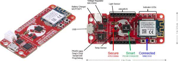Urządzenia IoT nie muszą mieć wbudowanych szybkich, dobrze wyposażonych, a przez to niestety drogich mikrokontrolerów. Pojawiły się rozwiązania zawierające mikrokontrolery 8-bitowe – jednym nich jest moduł moduł AVR-IoT WA (rysunek 11). Jest to platforma demonstracyjna bazująca na architekturze 8-bitowej mikrokontrolerów AVR, zaprojektowana do testowania rozwiązań IoT wykorzystujących łączność Wi-Fi. Zastosowano tu mikrokontroler ATmega4808, układ szyfrujący ATECC608A i moduł łączności Wi-Fi WINC1510. To z czym nie mógłby poradzić sobie 8-bitowy mikrokontroler, wykonają układ szyfrujący i moduł łączności. Płytka PCB jest bardziej skomplikowana, ale oprogramowanie mikrokontrolera jest prostsze, bo nie ma potrzeby programowania szyfrowania i standardu transmisji Wi-Fi. To bardzo interesująca opcja dla konstruktora.