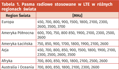 LTE funkcjonuje w różnych pasmach radiowych. Lista używanych pasm w poszczególnych regionach świata została zebrana w tabeli 1. Fale o niższych częstotliwościach rozprzestrzeniają się łatwiej i mają większy zasięg. Częstotliwość 800 MHz stosowana w 4G LTE jest tzw. częstotliwością pokryciową – zapewnia dobry zasięg na mniej zaludnionych i słabiej zurbanizowanych terenach. W miastach z kolei zapewnia lepszy zasięg w budynkach. Wyższe częstotliwości (są to najczęściej 1800 MHz, 2100 MHz i 2600 MHz) to tzw. częstotliwości pojemnościowe – sprawdzają się dobrze w miejscach, w których z połączenia z siecią korzysta bardzo wiele urządzeń, np. w dużych miastach.