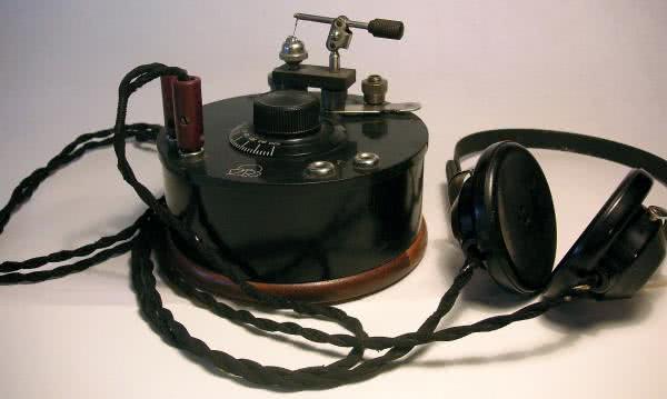 Jednym z pierwszych urządzeń, które korzystało z pozyskiwania energii z fal elektromagnetycznych z modulacją amplitudy, było radio kryształkowe z przełomu dziewiętnastego i dwudziestego wieku [5]. Występują w nim wszystkie potrzebne elementy: antena, układ dopasowania (i strojenia), element prostownika (kryształ) i odbiornik energii (słuchawki). Detektor kryształkowy był pierwszym elementem półprzewodnikowym stosowanym w technice. Do jego budowy był potrzebny kryształ półprzewodnika (stąd nazwa) - głównie naturalna galena. Kryształ galeny niezbyt pewnie pracował jako dioda, faktyczne złącze powstawało w miejscu styku cienkiego drucika stalowego z kryształem. Drucik osadzony był w manipulatorze umożliwiającym dotykanie nim do różnych miejsc na powierzchni kryształu w poszukiwaniu najbardziej czułych punktów (fotografia 1).