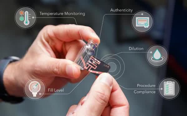 Platforma Wiliot’s Sensing as a Service to zwycięzca konkursu Low-Cost Food Traceability Challenge Amerykańskiej Agencji ds. Żywności i Leków (FDA) na tanie lub bezkosztowe śledzenie żywności. Znaczniki IoT Pixels mogą być wykonane w postaci cienkich, przypominających znaczki etykiet i są na tyle małe, że można je nanosić na etykiety fiolek ze szczepionkami (rysunek 8).