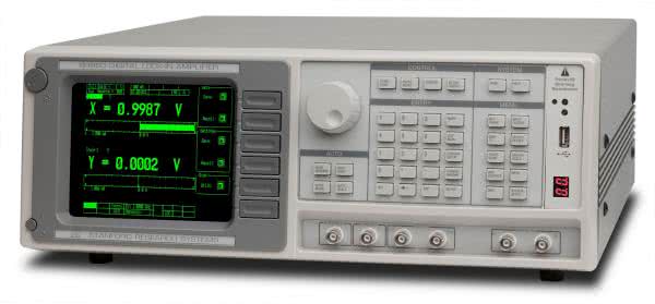 - Akwizycja sygnałów analogowych – stabilne źródła częstotliwości mogą także służyć do taktowania przetworników ADC/DAC, pracujących w szybkich systemach synchronicznej akwizycji sygnałów pomiarowych, również w zakresie spektrum poniżej pasma radiowego. Praktycznie wszystkie zaawansowane konwertery umożliwiają pracę z zewnętrznym źródłem sygnału taktującego, w tym przypadku jednak zastosowanie znajdują często źródła o relatywnie wąskim zakresie częstotliwości. Jednym z zastosowań precyzyjnych źródeł częstotliwości są także wzmacniacze fazoczułe (tzw. lock-in amplifiers, fotografia 2), używane do detekcji bardzo słabych sygnałów, występujących na tle silnego szumu i innych zakłóceń. Szczególnym przykładem niezwykle rozbudowanych aplikacji, które opierają się na precyzyjnym odmierzaniu czasu i częstotliwości, są systemy obrazowania medycznego, odpowiednio – PET oraz MRI.