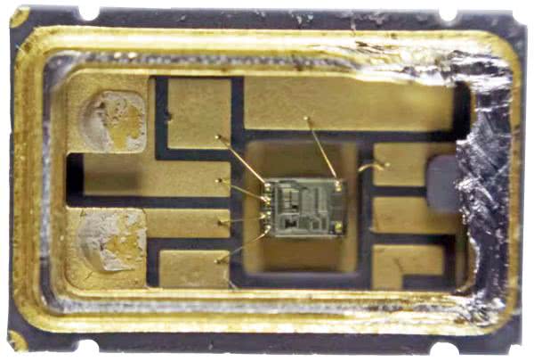Warto jednak wiedzieć, że sumiennie i dokładnie przeprowadzony proces projektowania układu pracy rezonatora wraz z wyczerpującym programem testów mogą uchronić projekt od klęski, spowodowanej awarią w najmniej oczekiwanym momencie. Prostszą metodą na zapewnienie niezawodności przez ominięcie pułapek związanych z zawiłościami fizyki oscylatorów, a dodatkowo dającą korzyści w postaci redukcji liczby elementów dyskretnych, jest zastosowanie hybrydowego oscylatora kwarcowego. Komponenty takie zawierają w swojej strukturze zarówno sam rezonator, jak i niezbędne układy aktywne zapewniające poprawny start i podtrzymanie oscylacji, zaś do ich pracy wymagane jest jedynie podanie zasilania oraz (ewentualnie) podłączenie dodatkowego, zewnętrznego kondensatora odsprzęgającego. Dawniej powszechnie stosowane były dość duże oscylatory w metalowych obudowach, przeznaczonych do montażu przewlekanego (fotografia 7) – dziś zostały one w dużej mierze wyparte przez miniaturowe oscylatory SMD, w których część półprzewodnikowa to już nie konwencjonalny układ scalony, ale struktura krzemowa bezpośrednio podłączona do wyprowadzeń ceramicznej obudowy techniką bondingu (fotografia 8).