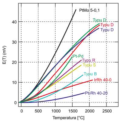 Na rysunku 4 pokazano charakterystyki niektórych termopar – widoczne są nieznaczne nieliniowości charakterystyk.