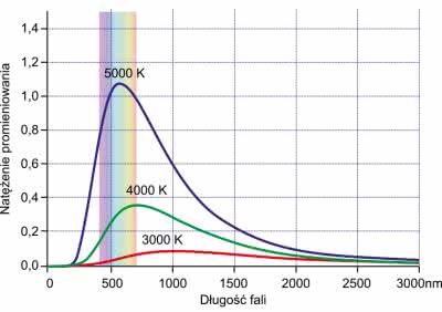 Wszystkie ciała o temperaturze powyżej zera bezwzględnego, emitują promieniowanie elektromagnetyczne. Jest to tak zwane promieniowanie ciała doskonale czarnego. Jego natężenie jest proporcjonalne do temperatury, a widmo przesuwa się wraz z temperaturą w stronę krótszych fal. Dla temperatury pokojowej i trochę wyższych (do około 600°C) widmo to zlokalizowane jest w podczerwieni. Powyżej tej temperatury część zaczyna już zachodzić na promieniowanie z zakresu światła widzialnego – dlatego też rozgrzane przedmioty świecą. Najzimniejsze na czerwono, potem na żółto, a następnie biało. Schematycznie zostało to pokazane na rysunku 6.
