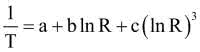 a, b i c to parametry danego termistora, które specyfikuje producent,