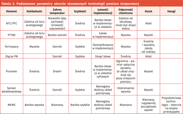 Na rynku dostępnych jest wiele rodzajów sensorów temperatury różniących się mechanizmami działania, a co za tym idzie, również parametrami i, w konsekwencji, obszarami aplikacji. Oczywiście, ideałem byłoby posiadanie dokładnego i szybkiego termometru o dowolnym zakresie temperatur… Jak łatwo się domyślić, fizyka zjawisk powiązanych z temperaturą nie pozwala na opracowanie takiego sensora. Dlatego też dobrze jest znać dostępne rozwiązania i wiedzieć, jak dobrać je do konkretnej aplikacji.