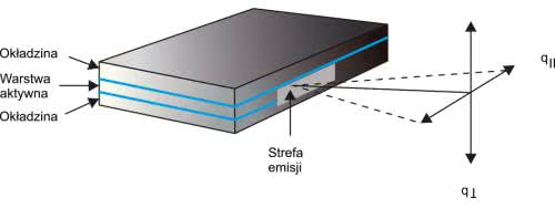 W diodach laserowych rozbieżność wiązki jest określona dwiema wartościami ze względu na obecność astygmatyzmu – rozbieżność zmienia się w zależności od osi wiązki. W takim przypadku należy określić orientację rozbieżności wiązki. Na rysunku 4 pokazano uproszczoną strukturę diody laserowej i rozbieżność wiązki wychodzącej z obszaru emitującego lasera diodowego.