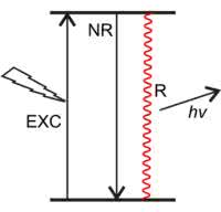 Cząstka w stanie podstawowym może zostać wzbudzona poprzez pochłonięcie pewnego kwantu energii. Jeśli dostarczona energia jest większa lub równa niż energia stanu wzbudzonego, to wówczas cząstka zostaje wzbudzona – jej energia rośnie, jednak energia ta nie może być „magazynowana” w cząstce w nieskończoność. Po pewnym czasie musi się ona pozbyć tej energii (średni czas życia stanu wzbudzonego nazywany jest czasem życia, τ). Cząstka może się pozbywać energii na kilka sposobów – dla uproszczenia opisu wymieńmy tylko dwa z nich: przejście promieniste (R) oraz niepromieniste (NR). Przejście promieniste związane jest z emisją fotonu (kwantu światła) o energii równej różnicy energii pomiędzy stanem wzbudzonym a podstawowym. Przejścia niepromieniste, to zbiorcza nazwa dla wszystkich trajektorii relaksacji stanu wzbudzonego, które nie wiążą się z emisją fotonu. Wszystkie te zachowania zilustrowano na diagramie, pokazanym na rysunku 1. Jest to tak zwany Diagram Jabłońskiego, który w fizyce używany jest do obrazowania przejść pomiędzy różnymi stanami elektronowymi.