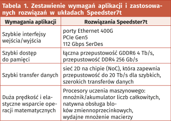 Zestawienie najważniejszych rozwiązań zastosowanych w układach z rodziny Speedster7t zestawiono w tabeli 1.