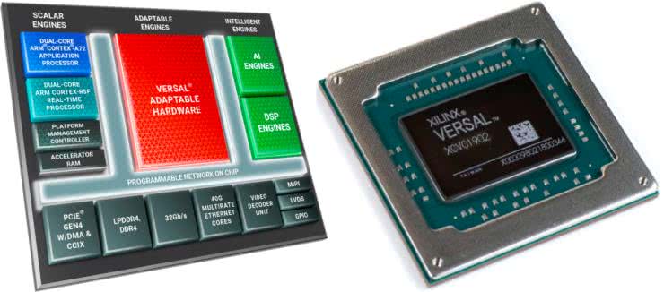 Kolejnym układem FPGA, który został zoptymalizowany do wykonywania zadań AI, jest Intel Stratix 10 NX (rysunek 2). Specjalne bloki obliczeniowe zapewniają przyśpieszone rozwiązania obliczeniowe sztucznej inteligencji. Układ zawiera nowy typ zoptymalizowanego bloku AI o nazwie AI Tensor Block, który jest dostosowany do typowych mnożeń macierz-macierz lub wektor-macierz stosowanych w obliczeniach AI, z możliwościami zaprojektowanymi do wydajnej pracy zarówno dla małych, jak i dużych rozmiarów macierzy. Pojedynczy blok tensora AI osiąga wydajność 143 INT8 TOPS lub 286 INT4 TOPS.