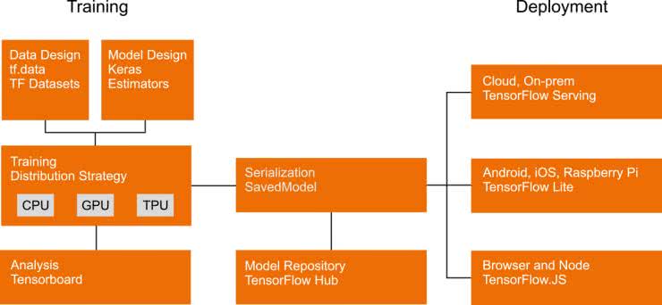 Dzięki ścisłej integracji Keras z TensorFloworaz szybkiemu wykonywaniu funkcji w języku Python, TensorFlow 2.0 sprawia, że doświadczenie tworzenia aplikacji jest jak najbardziej znajome dla programistów Pythona.