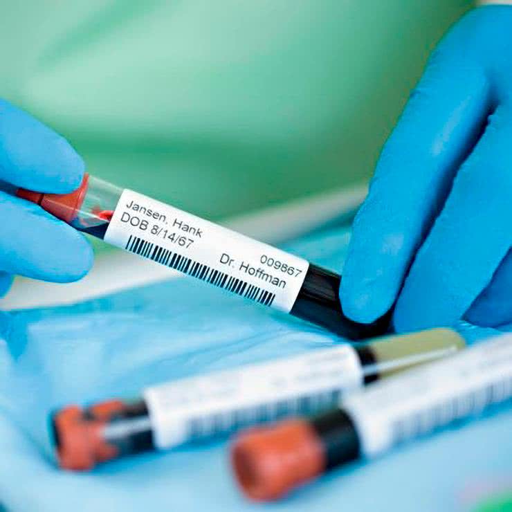 Etykiety z kodami kreskowymi są także szeroko stosowane w diagnostyce laboratoryjnej do oznaczania próbek materiału biologicznego (np. krwi czy moczu – fotografia 8) oraz obsługi zleceń w laboratoriach komercyjnych – systemy teleinformatyczne pozwalają na bezbłędną identyfikację próbek i przypisywanie wyników do indywidualnych kont pacjentów lub tymczasowych kont tworzonych dla nowych klientów, co umożliwia samodzielne sprawdzenie wyników z poziomu przeglądarki internetowej.