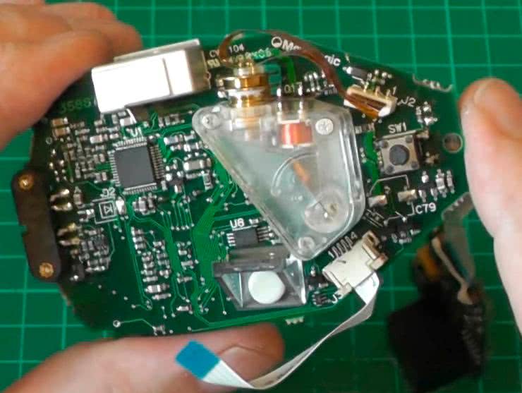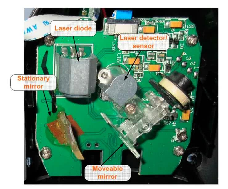 Białe krążki umieszczone w czterech narożnikach całego zespołu skanera stanowią amortyzację, chroniącą czułą optykę urządzenia przed drganiami, przenoszonymi poprzez obudowę. W urządzeniu zastosowano także szereg innych, interesujących rozwiązań technicznych – Czytelników zainteresowanych szczegółami jego konstrukcji zachęcamy do obejrzenia przytoczonego odcinka na kanale EEVblog.