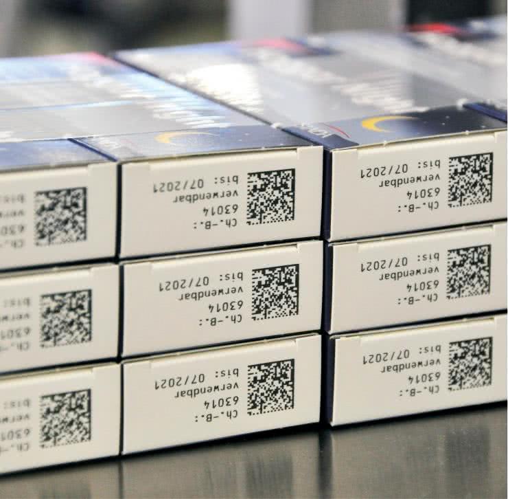 Nietrudno sobie wyobrazić, jak krytycznie ważne dla bezpieczeństwa pacjentów jest uniknięcie sytuacji, w której lek o danym stężeniu substancji czynnej jest pakowany w pudełko (lub wyposażony w ulotkę), przeznaczone dla wersji o zupełnie innym stężeniu, a nawet – dla diametralnie innego farmaceutyku. Od pewnego czasu można zauważyć, że wiele firm rezygnuje ze stosowania PHARMA-CODE na rzecz kodów dwuwymiarowych (głównie Data Matrix), pozwalających na zapisanie większej ilości informacji (fotografia 23).