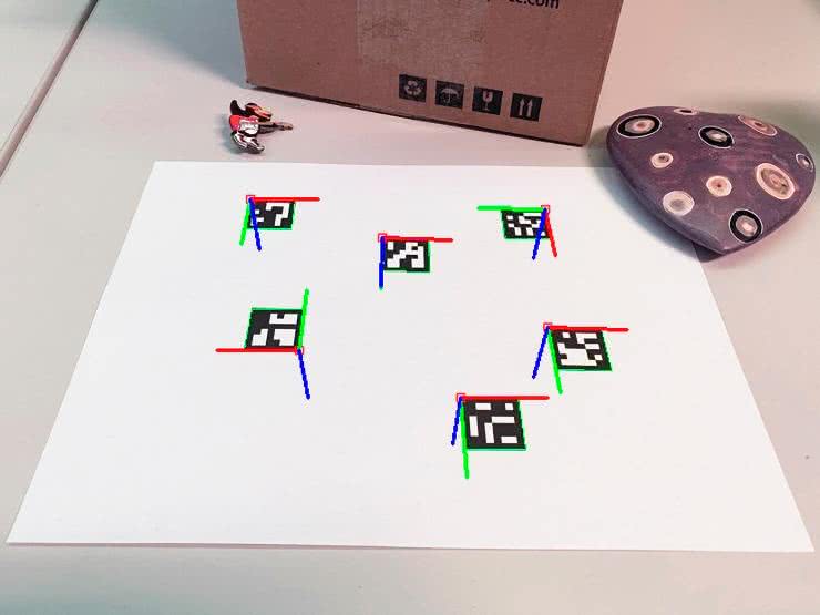 Znaczniki takie ułatwiają zatem precyzyjne określenie np. orientacji obrazowanej sceny względem matrycy kamery – (fotografia 31). Cecha, która odróżnia je od wcześniej omówionych kodów 2D, leży jednak w zawartości danych – podczas gdy w niemal wszystkich wypadkach czytnik kodów 2D pracuje z oznakowaniem wcześniej mu nieznanym (a rozpoznaje go dzięki algorytmom ustalającym format zapisu), to systemy wizyjne korzystające z markerów ArUco (lub podobnych) szukają na obrazie symboli z predefiniowanego słownika.